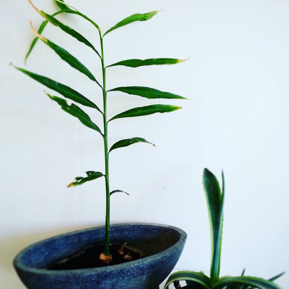 Min skønne og ikke mindst sunde Ingefær-rod er nøjsomt blevet passet og plejet i drivhuset over sommeren. Sæsonen har været lang og varm, men det er nu blevet efterår og planten er sat ind i køkkenet. Både til pynt og selvfølgelig med henblik på høst – forhåbentlig – inden længe!!